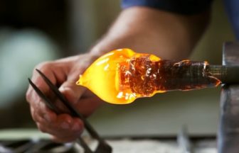 베네치아의 중심부에 있는 오래된 유리 공방에서 장인이 열을 가하여 유리공예품을 제작하는 작업를 직접 보…